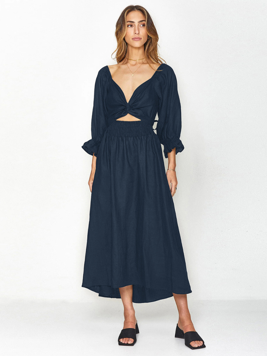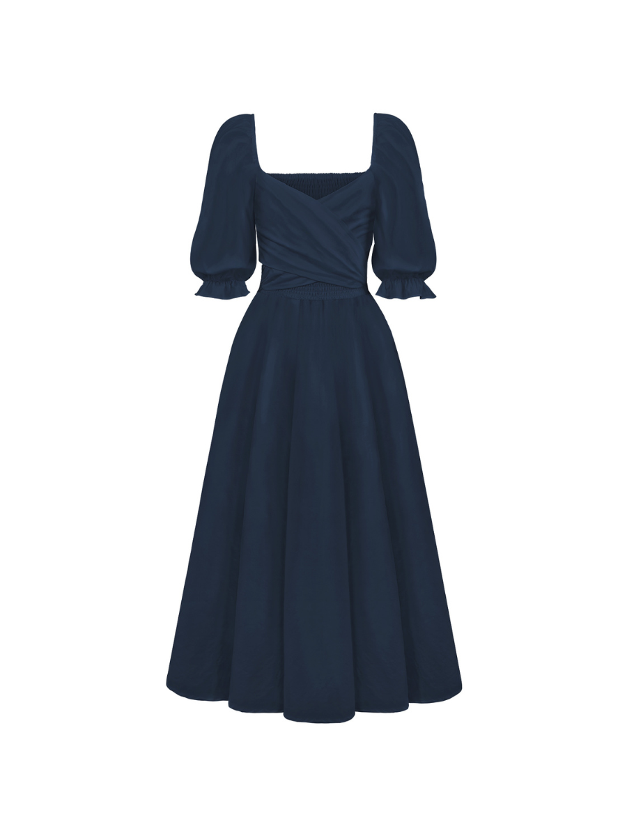 SUNSET SANDS TWO WAY WEARABLE MIDI DRESS - NAVY