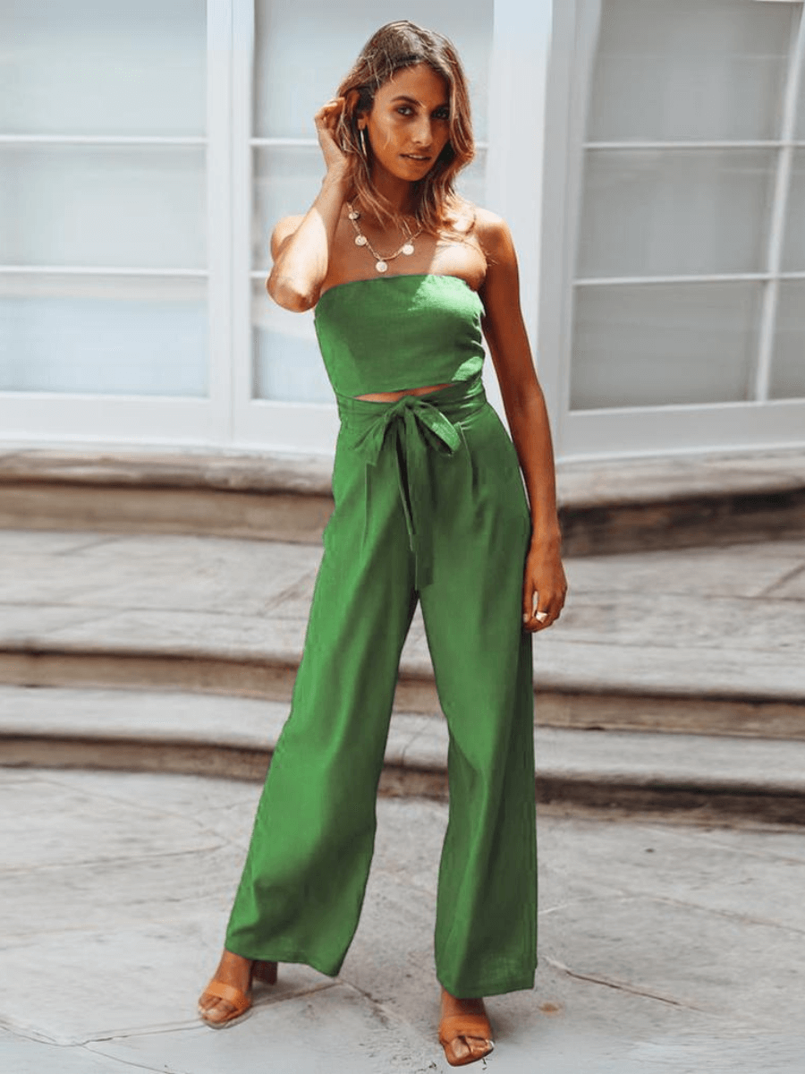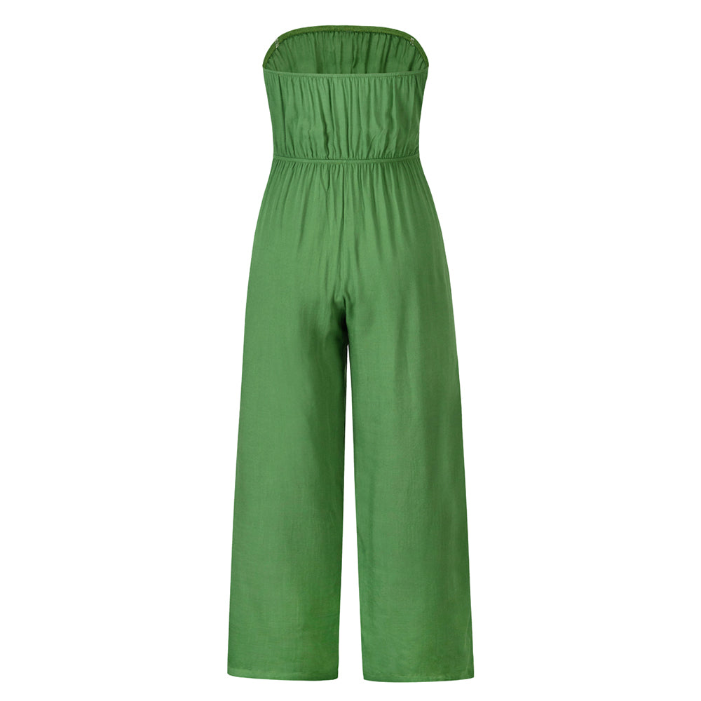 Tammy Strapless Waist Tie Front Jumpsuit - Green