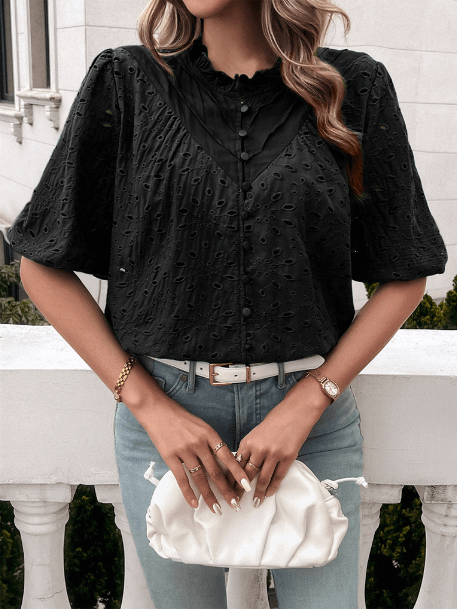 Ventura Eyelet Short Sleeve Blouse - Black