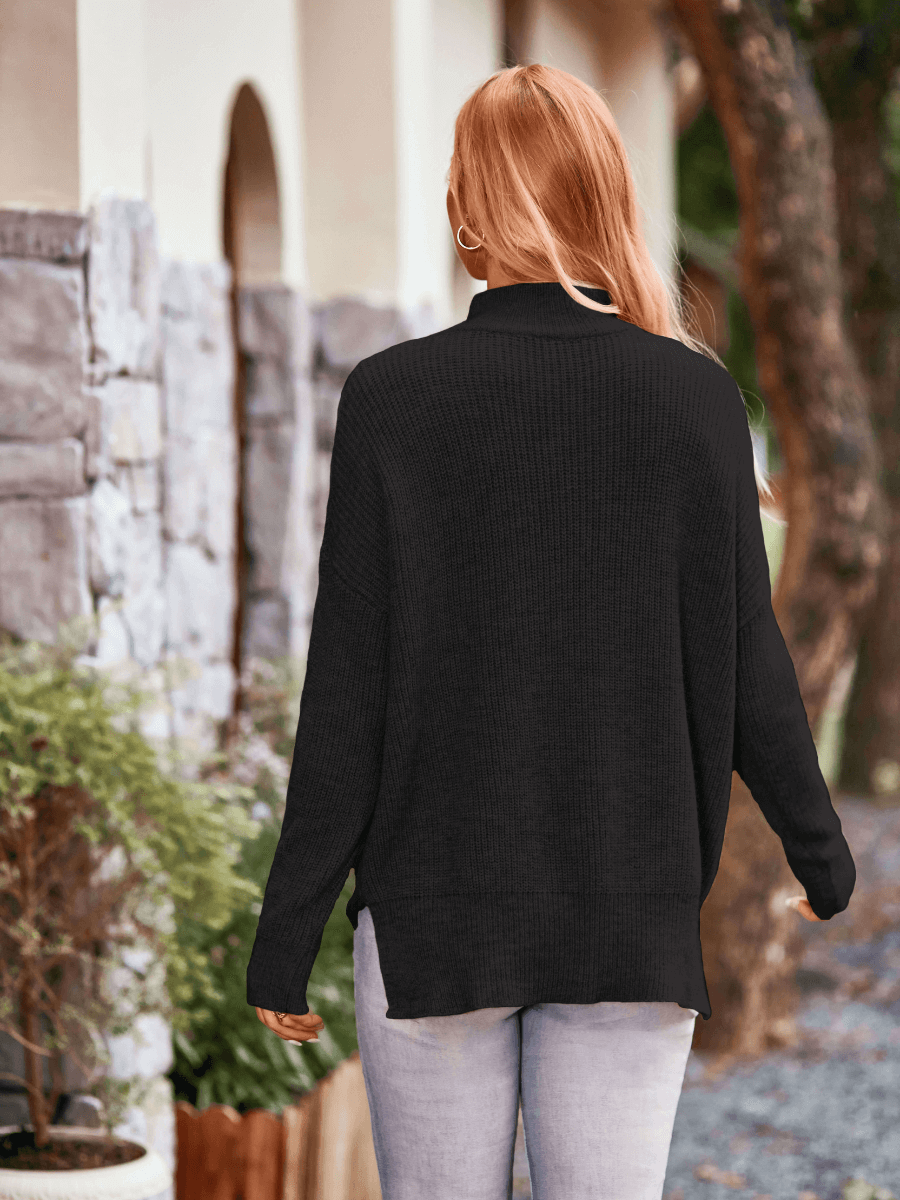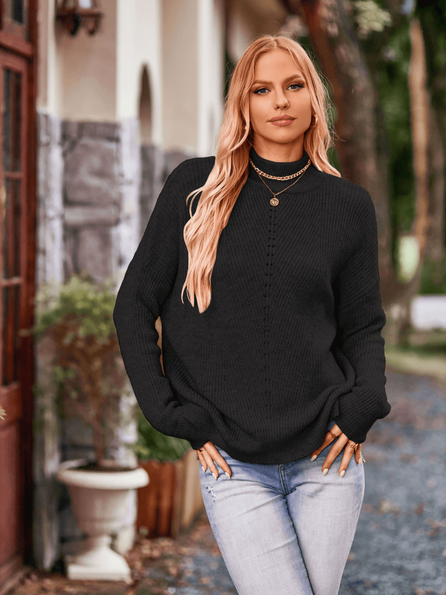 - Feature: MockNeckline. Drop shoulders. Long Sleeves.Soft Knit Fabric.Relaxed Fit.